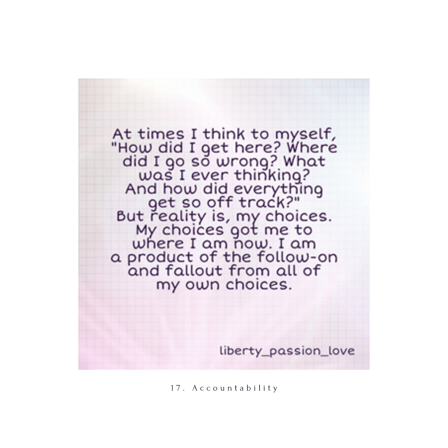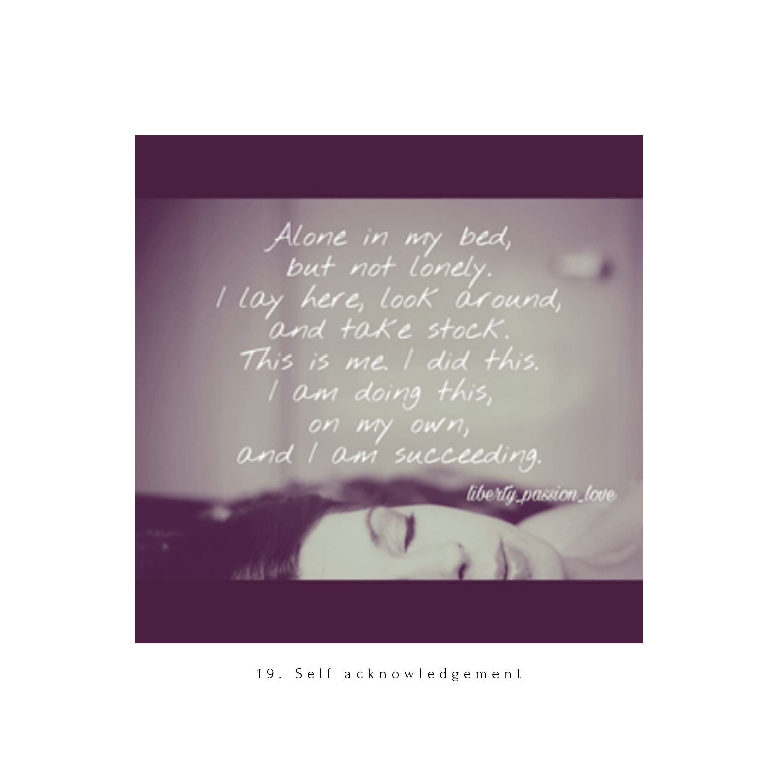 Description: At the end of 2021, I compiled some of my writings from 2016 – 2018, from my initial expression as liberty_passion_love on Instagram. I had embarked on a journey of self-discovery and re-determining my self-worth following the completion of my marriage and relationship of more than 11 years, where I had become heavily co-dependent and sacrificed much of myself. To the point that I had lost my sense of self and identity as an individual. Herein is a snapshot of those few years along my journey.