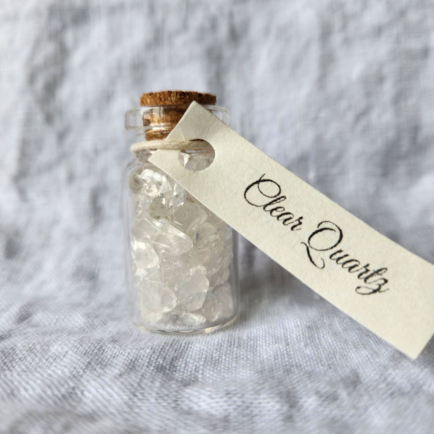 Description: Clear Quartz are an incredible ‘universal’ crystal, and these cute little chips are encased in a jar for safe storage!