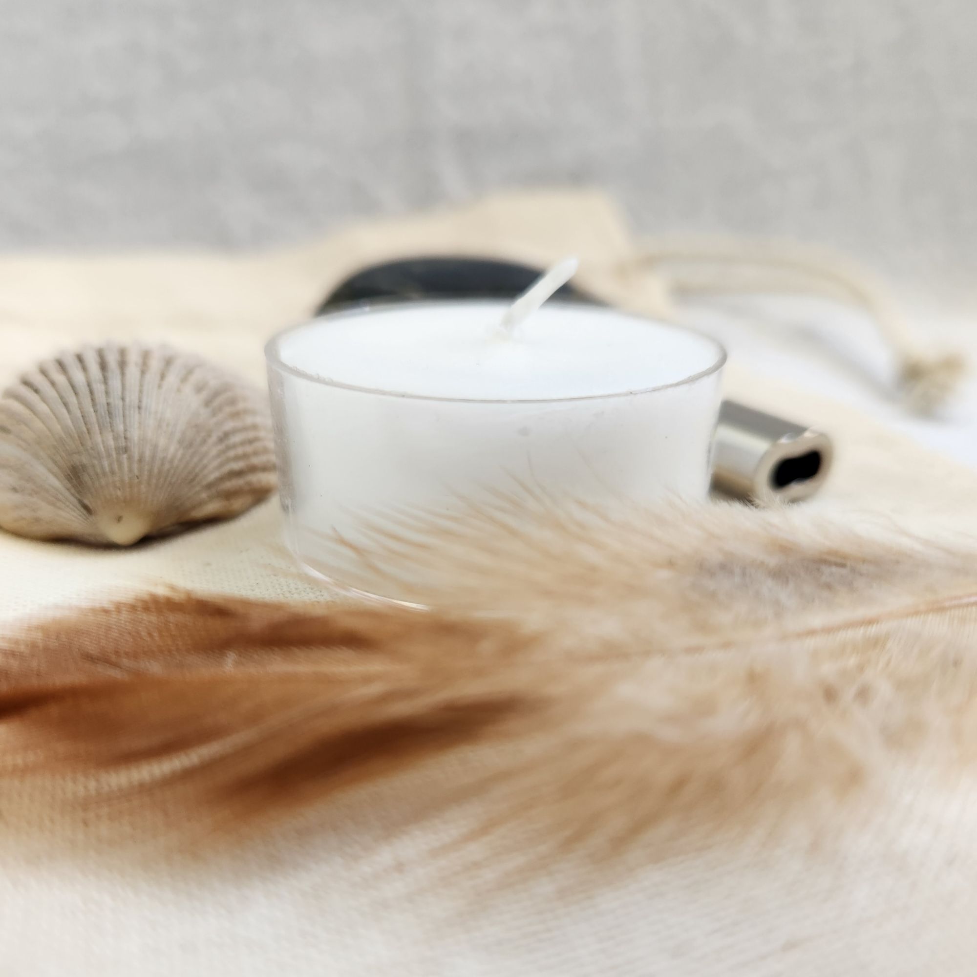 Swaddled in a cotton drawstring bag, you’ll receive a feather, sea shell, nickel plated copper swage, stone and candle, along with a card that identifies each item and what they symbolise – guiding you to tune into these parts of yourself, what you notice & observe on a sensory level, to then ground and redirect their expression.